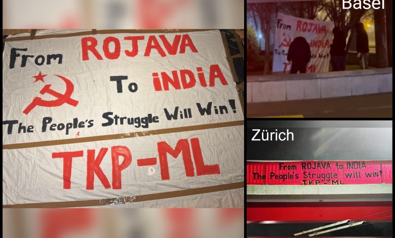 tkpml.com sitesinde yer alan habere göre, TKP-ML militanları, İsviçre’nin Zürih ve Basel şehirlerinde Rojava ve Hindistan için “From Rojava to İndia, The People’s Struggle Will Win!” (Rojava’dan Hindistan’a, Halkların Mücadelesi Kazanacak!) yazılı pankartlar astıklar astı.