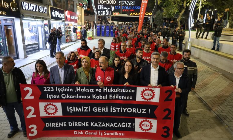 Sanat Sokağı’nda bir araya gelen işçiler eylemlerine halaylarla başladı. “223 işçinin haksız ve hukuksuzca işten çıkarılması kabul edilemez. İşimizi geri istiyoruz. Direne direne kazanacağız” yazılı pankart açan işçilerin gerçekleştirdiği açıklamaya kentte bulunan siyasi parti temsilcileri, sDKÖ’ler ve çok sayıda kişi katıldı.