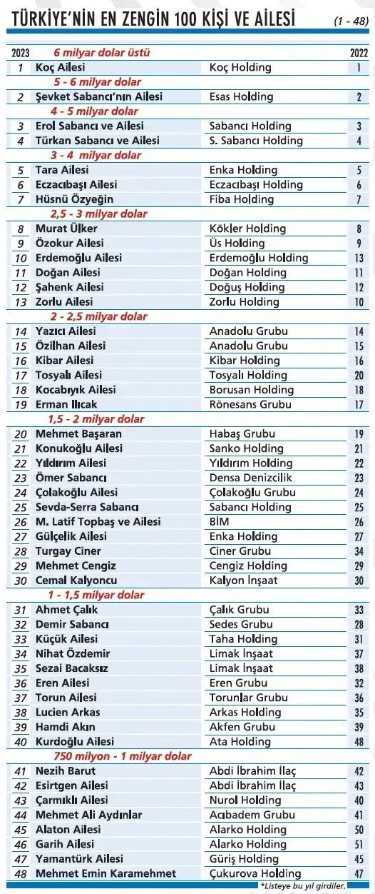 Kaynak: “İşte Türkiye’nin en zengin 100 ailesi”, 11 Aralık 2023, Ekonomim