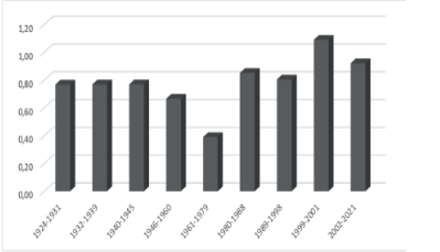 Şekil: Türkiye’de sömürü derecesinin dönemsel ortalamaları