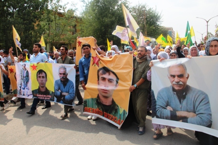 HDP Wan Milletvekili ve DTK Eş Başkanı Aysel Tuğluk, DBP ve HDP Siirt il ve ilçe yöneticileri, DBP’li belediye eş başkanları, MEYA-DER ve Barış Anneleri Meclisi’nin de katıldığı cenaze töreninde PKK Lideri Abdullah Öcalan, YPG”li Ateş ve PKK’nin ilk kadrolarından Mahsum Korkmaz’ın (Egîd) posterleri ile PKK ve YPG bayrakları taşındı. Sık sık “Bijî Serok Apo”, “Şehîd Namirin”, “Bijî berxwedana YPG’ê” ve “Kürdistan IŞİD’e mezar olacak” sloganlarını atıldı.