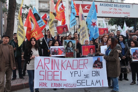 Mersin: MLKP savaşçısı Sibel Bulut (Sarya Özgür) Kobânê’nin güney cephesinde, DAİŞ çetelerine karşı savaşırken 12 Aralık 2014’te eylem sırasında şehit düştü. Bunun üzerine Mersin HDK Kadın Meclisi, Özgür Çocuk Parkı’nda bir basın açıklaması ve ardından oturma eylemi gerçekleştirdi.
