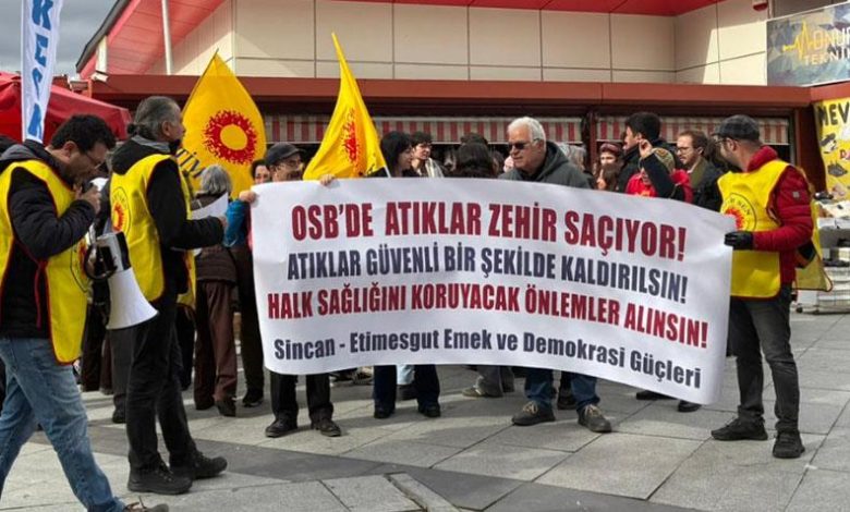Sincan-Etimesgut Emek ve Demokrasi Güçleri yaptığı eylemle Erkunt Sanayi fabrikasının zehirli atıkları koruyucu önlem almadan fabrika bahçesine istiflemesine tepki gösterdi.