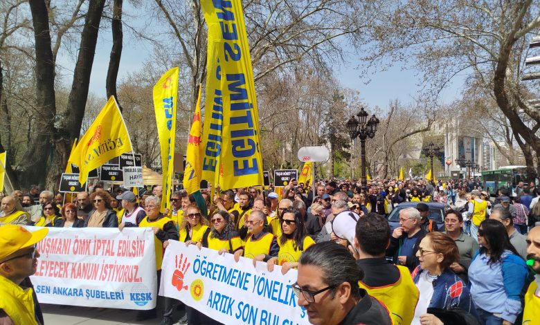 Siverek’te bulunan Ahmet Koyuncu Mesleki ve Teknik Anadolu Lisesi’nde yaşanan saldırının ardından, Eğitim Sen ve Eğitim-İş çağrısıyla iş bırakan öğretmenler Yüksel Caddesi’nden Milli Eğitim Bakanlığı’na yürüdü.