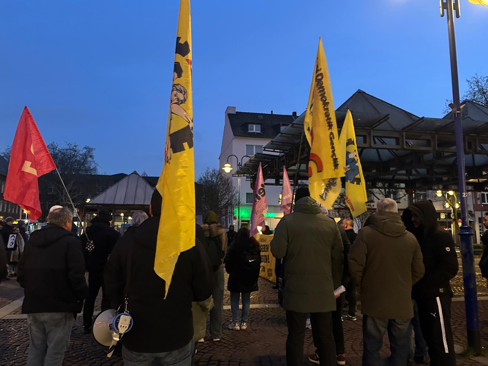 Duisburg’da ise anma ve yürüyüş “6 Jahre nach Hanau – Kein Vergeben, Kein Vergessen!” şiarıyla gerçekleştirildi. Program kapsamında ilk olarak König-Heinrich-Platz’ta saygı nöbeti tutuldu; katledilenlerin isimleri okunarak adalet talebi dile getirildi. Ardından Marxloh’daki August-Bebel-Platz’a geçildi.