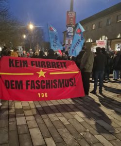 ATİF ve YDG’nin de “Faşizme alan yok!” pankartıyla katıldığı eylemde, “Faşizme karşı omuz omuza” ve “Yaşasın enternasyonal dayanışma” sloganları atıldı. Ardından kent merkezinin ana caddelerinde yürüyüş gerçekleştirildi ve eylem yapılacağı Bad Cannstatt Meydanı’na geçildi.