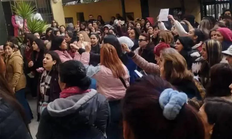 Lazkiye Limanı’nda çalışan onlarca işçi, keyfî işten çıkarma kararlarını protesto ederken, yüzlerce öğretmen de zorunlu görev yeri değişikliği kararına karşı Lazkiye İl Milli Eğitim Müdürlüğü önünde eylemdeydi.