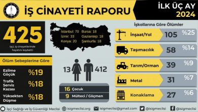 İSİG: 2024 yılının ilk üç ayında en az 425 işçi hayatını kaybetti