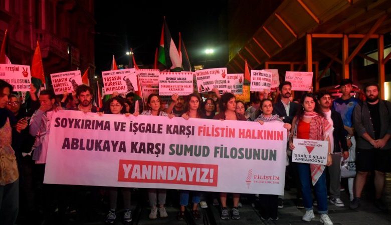 Küresel Sumud Filosu ile dayanışma amacıyla dün düzenlenen yürüyüşte binlerce kişi Taksim Tünel’den Şişhane Meydanı’na yürüdü. Filistin Eylem Komitesi ve destekçileri, Gazze ablukasını kırma girişimini selamlayarak İsrail’e yönelik politikaların ve uluslararası sessizliğin kınandığı talepleri yineledi.