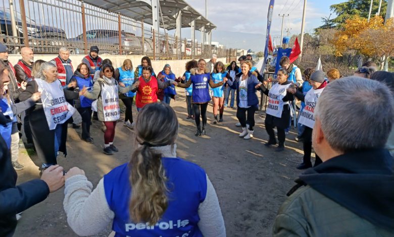 Grev çadırı önünde gerçekleştirilen etkinlikte konuşan Petrol-İş Sendikası Aliağa Şubesi temsilcisi Hasan Toptan, işçilerin kararlılığına dikkat çekerek şunları söyledi: