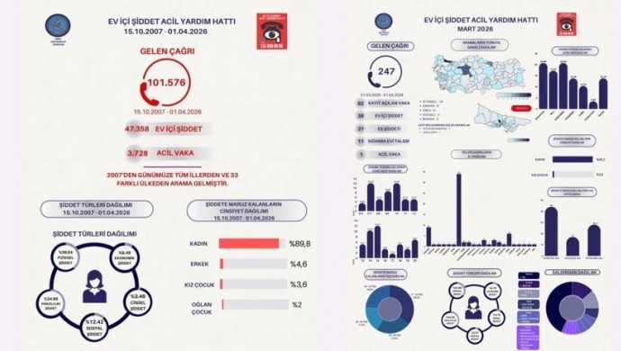 Raporda ayrıca, Ev İçi Şiddet Acil Yardım Hattı’na 15 Ekim 2007’den 1 Nisan 2026’ya kadar toplam 101 bin 576 çağrı yapıldığı, bu çağrıların 33 farklı ülkeden geldiği bilgisi de paylaşıldı.