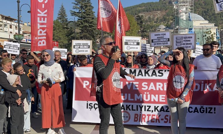 BİRTEK-SEN Genel Başkanı Mehmet Türkmen, tekstil sektöründe patronların işçilerin birikmiş tazminatlarına çökmeyi sermaye birikim yöntemi olarak kullandığını belirterek, “Tokat’ta verilen kavga bunun kavgası. Tüm emekçileri Şık Makas işçileriyle dayanışmaya çağırıyoruz” dedi.