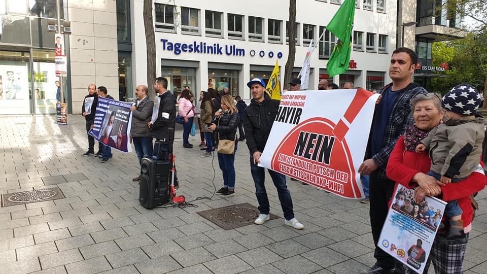 Faşist AKP-MHP bloğunun 31 Mart yenilgisini kabul etmeyip İstanbul seçimlerini yeniletme kararı aldırarak YSK eliyle halk iradesine darbe yapması Ulm’da protesto edildi. “Bu darbe karşısında sessiz kalmak, yapılan gaspı kabullenmek anlamına gelecektir” açıklamasında bulunan eylemciler, Almanca konuşma yaparak slogan attılar. Üzerinde Türkçe-Almanca “Faşist AKP-MHP’nin İstanbul darbesine hayır” yazılı pankartın açıldığı gösteride “Hırsız Erdoğan, İstanbul bizim” ve “İstanbul faşizme mezar olacak” sloganları atıldı.
