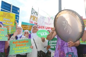 Kadınların ulusal kıyafetleri ile katıldığı yürüyüş büyük bir coşkuya sahne olurken, erbaneler eşliğinde Kürtçe stranlar seslendirildi. Eyleme Barış Anneleri, Özgür Kadın Hareketi (TJA), Halkların Eşitlik ve Demokrasi Partisi (DEM Parti), DEM Parti milletvekilleri Çiçek Otlu, Ömer Öcalan, Demokratik Bölgeler Partisi( DBP) temsilcileri ile çok sayıda kişi katıldı.