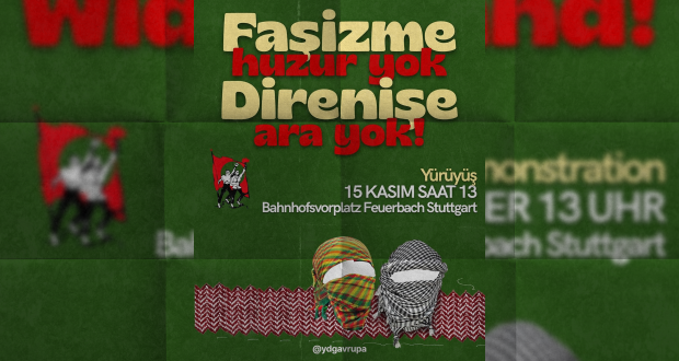 15 Kasım’da Stuttgart Feuerbach Bahnhof’ta düzenlenecek eylem için yapılan çağrıda, YDG tüm antifaşist, ilerici ve devrimci gençliği ortak mücadeleye davet etti:
