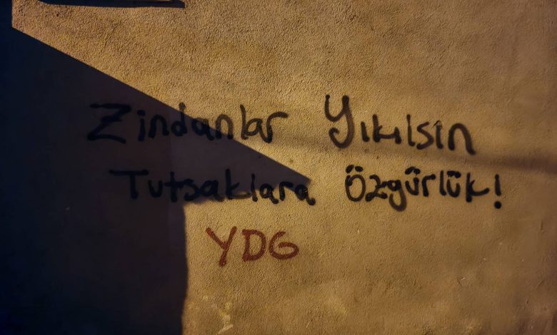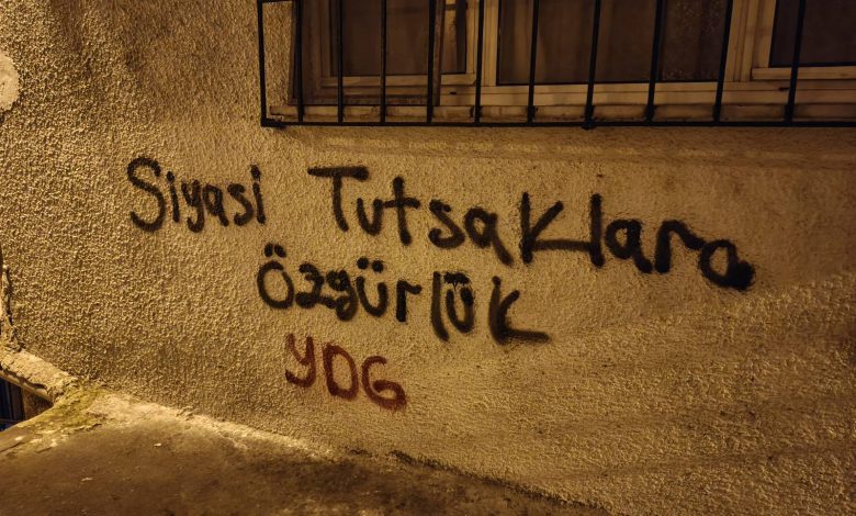 Yeni Demokrat Gençlik (YDG), Ezilenlerin Sosyalist Partisi (ESP) ve Sosyalist Gençlik Dernekleri Federasyonu’na (SGDF) yönelik gözaltı ve tutuklamalara karşı İstanbul’da yazılama gerçekleştirdi. Duvarlara “ESP ve SGDF’li tutsaklara özgürlük”, “Devrimci tutsaklar onurumuzdur”, “Siyasi tutsaklara özgürlük” ve “Zindanlar yıkılsın tutsaklara özgürlük” sloganları yazıldı.