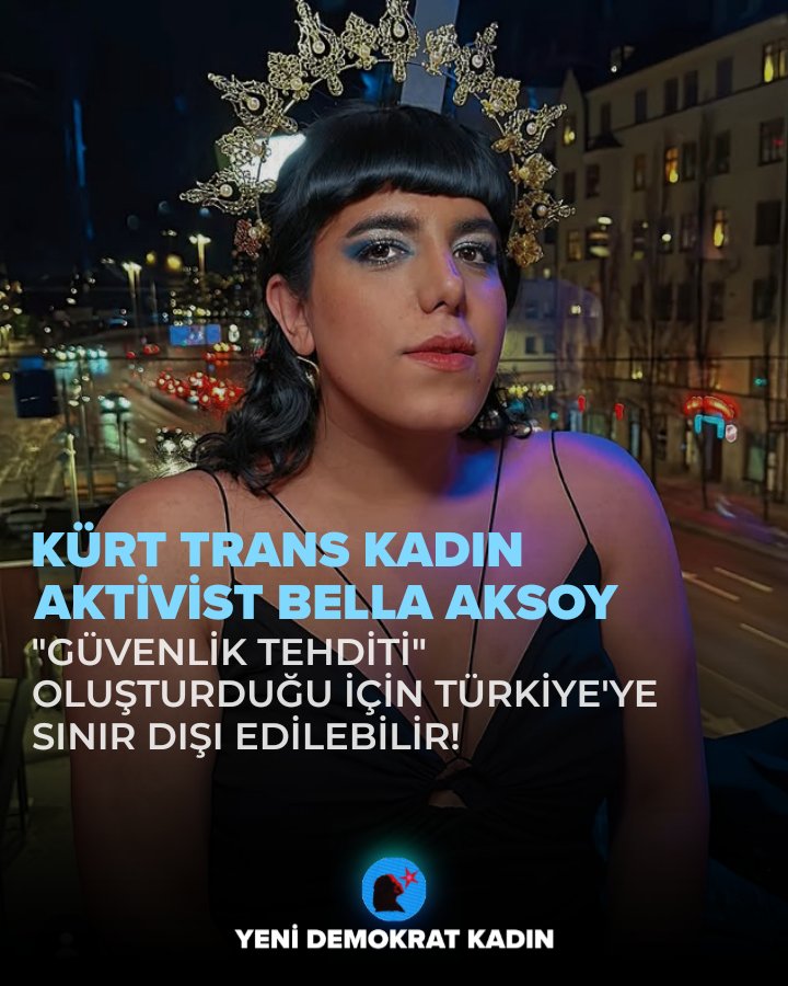 Kürt trans kadın aktivist Bella Aksoy’un Türkiye’ye sınır dışı edilme tehdidiyle karşı karşıya olduğu yönündeki gelişmelerin ardından, Yeni Demokrat Kadın (YDK) dayanışma açıklaması yaptı. Açıklamada, Bella’nın Türkiye’de uzun yıllar LGBTİ+ ve Kürt mücadelesinin içinde aktif rol aldığı hatırlatıldı.