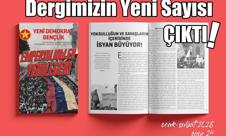 Yeni Demokratik Gençlik (YDG) dergisinin 24. sayısı çıktı. Yeni sayının sunu yazısında, emperyalist savaş politikalarının, artan baskı ve şiddetin damga vurduğu bir dönemde gençliğin üniversitelerde, işçi grevlerinde ve sokaklarda mücadeleyi büyüttüğüne dikkat çekildi.