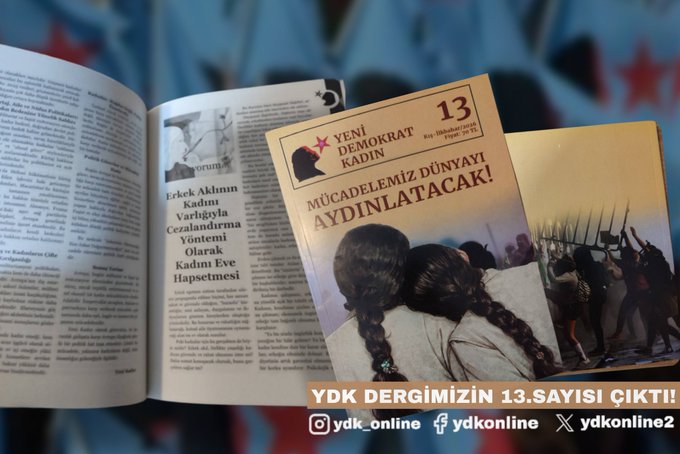 Yeni Demokrat Kadın (YDK), 13. Sayısını çıkardığını, “İçinde bulunduğumuz sürecin tüm ağırlığı arasında dergimizi hazırladık. Ne söylersek söyleyelim, ne yazarsak yazalım yetmediği, eksik hissettirdiği zamanlar oluyor böyle zamanlar. Buna rağmen yoğun emek ve çaba ile onlarca kadının emeği, sözü ile bütünleşerek hazırladık dergimizi” sözleri ile duyurdu.