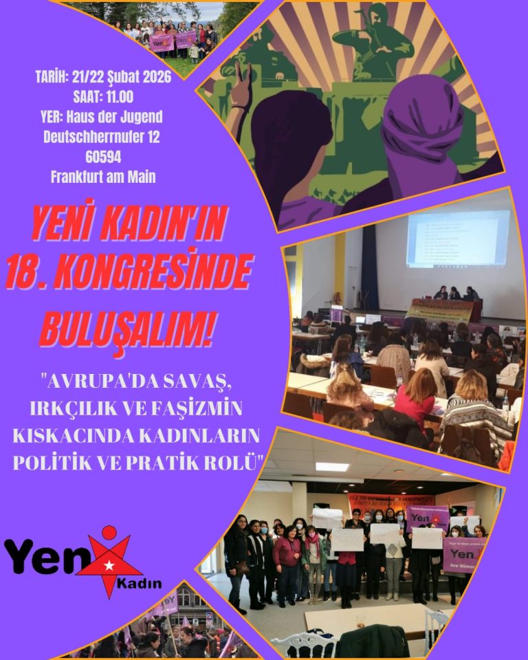 Yeni Kadın, 18. Merkezi Kongresi’ni 21–22 Şubat 2026 tarihlerinde gerçekleştireceğini duyurdu. Yapılan açıklamada, kongrede Avrupa’da derinleşen savaş politikaları, ırkçılık ve faşizmin kadınlar üzerindeki etkileri ile kadınların politik ve pratik rolünün ele alınacağı belirtildi.